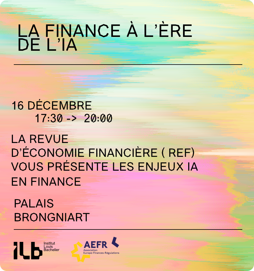 Following the publication of Issue No. 159 of the Revue d’Économie Financière (REF), dedicated to “Finance in the Age of Artificial Intelligence”, the Institut Louis Bachelier and the Association Europe–Finances–Régulations are pleased to invite you to the REF conference, which will present and discuss its main insights.